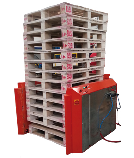 Es un equipo con grandes prestaciones en depositos de logística, supermercados, empresas de picking o rotación de producto. Existen dos versiones de esta máquina, una para apilar y otra para des apilar pallets. Puede trabajar con una columna hasta 15 pallets permitiendo la organización del área de trabajo y evitando esfuerzos innecesarios en la manipulación de pallets.